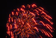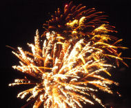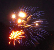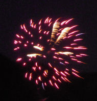 It was Canada Day, so, of course, there were fireworks. Phil and I packed only our tiny point-and-shoot cameras, ironically a Nikon for me and a Canon for Phil. We both have digital SLRs (Phil's is a Nikon and mine a Canon) but they require luggage space we didn't have. Acceptable shots, given the camera and the fact that I was hand-holding a 1+ second exposure.