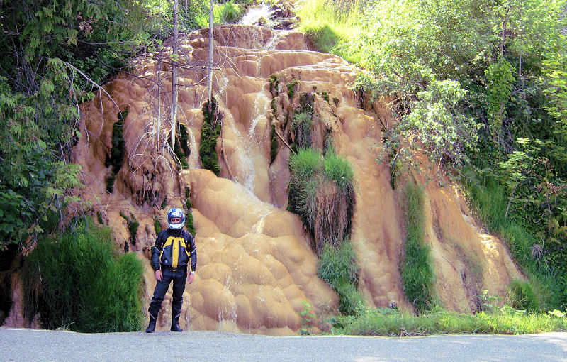 Heading south towards the ferry at Balfour, the main tourist attraction is Ainsworth Hot Springs. I've sat in the hot springs there and crawled a ways into the cave where the spring emerges, but I've never noticed this mineral deposit before. It's right along side the highway under some large trees.