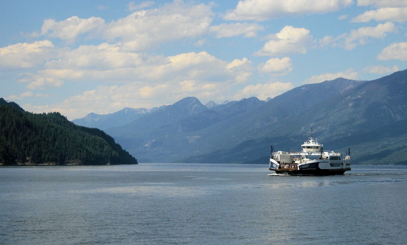 At Balfour, we decided to take the free ferry across Kootenay Lake to Crawford Bay, so we could ride Hwy 3A down to Creston. This is the larger of the two ferries that make the run with a departure about once an hour — I think it's the longest free ferry ride in Canada.