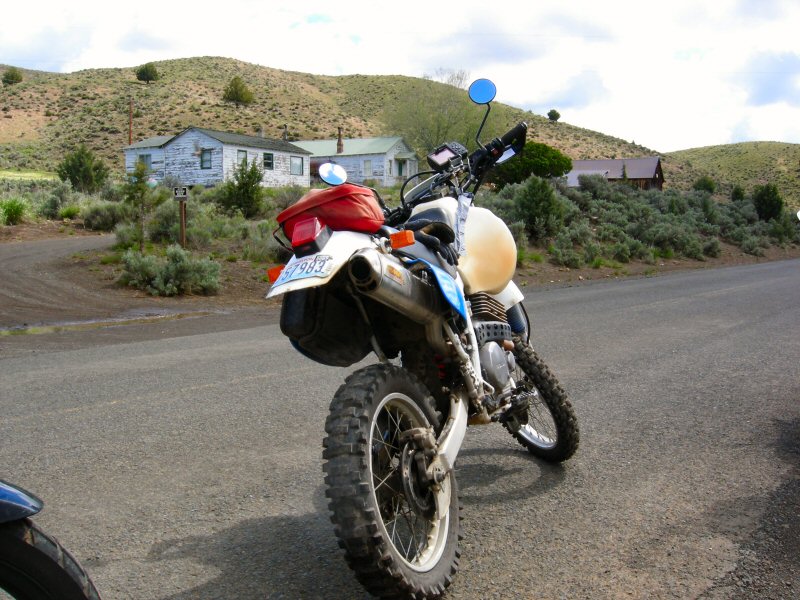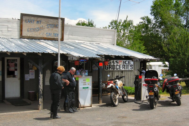 The general store at Plush, OR. 87 octane fuel available. We seemed to average about 50mpg on both the XR650 and the DL-650s. With the Clarke 4.7 gallon tank on my XR, that gave us a 200+ mile range between fill-ups.