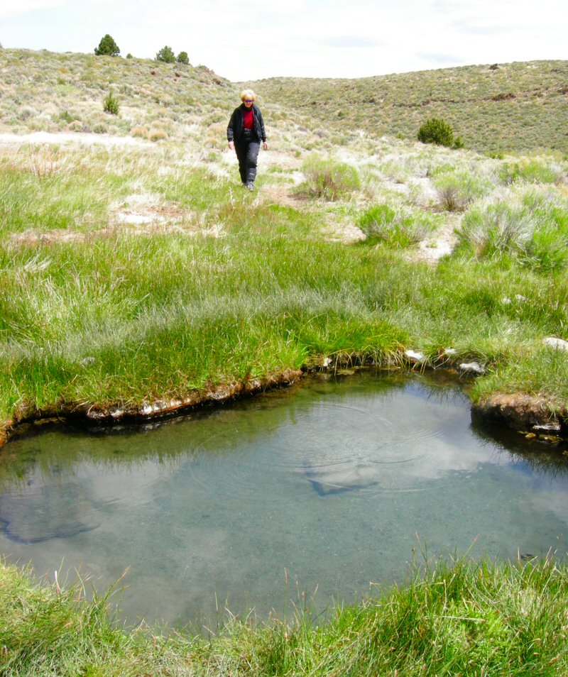Here's Debb walking towards the "natural" hot springs, which was quite a bit hotter. A couple was there when we first arrived and the guy found it too hot, though his female companion was in up to her neck.