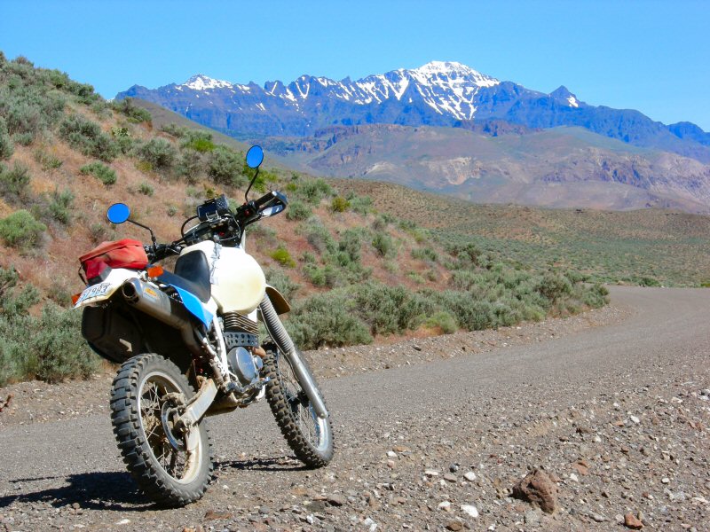 My favorite shot of the trip — looking roughly north towards the Steens from the "Alvord Desert road". My XR650L in the foreground. This was my first real trip on the XR, and aside from some initial hard-starting, ran perfectly the whole trip (Thanks to Bob Taylor for selling it to me!).