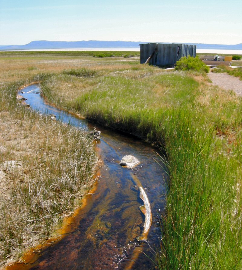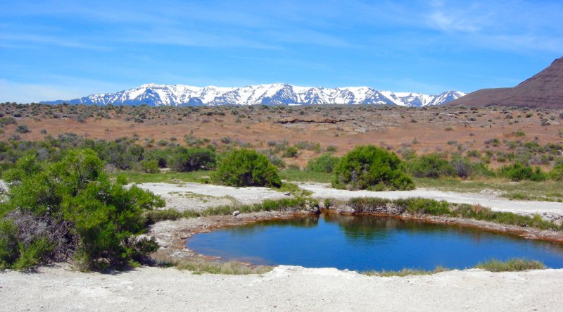 The popular hot springs between the road and Alvord Lake (or most of the year, presumably, the playa). Half the springs is open, with a boardwalk around it. The other half is enclosed in beat-up corrugated metal sheets. Not very appealing. We passed on it.