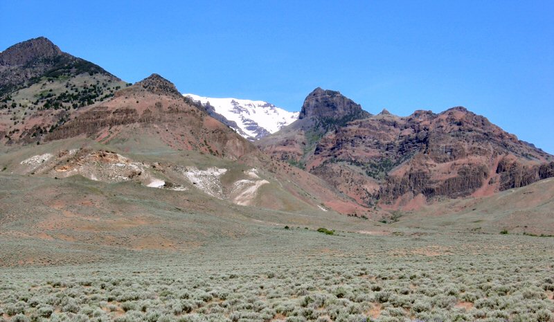 The snow-covered Steens Mountains in the distance. We tried to take the Steens Loop road, but it was closed a few miles in. It's the highest road in Oregon, at 9700'. The mountains don't look nearly as spectacular from the west, as the slope is pretty gentle from the 4500' of Frenchglen to the 10000' of the summit. The eastern side is very abrupt, and thus photographs better.