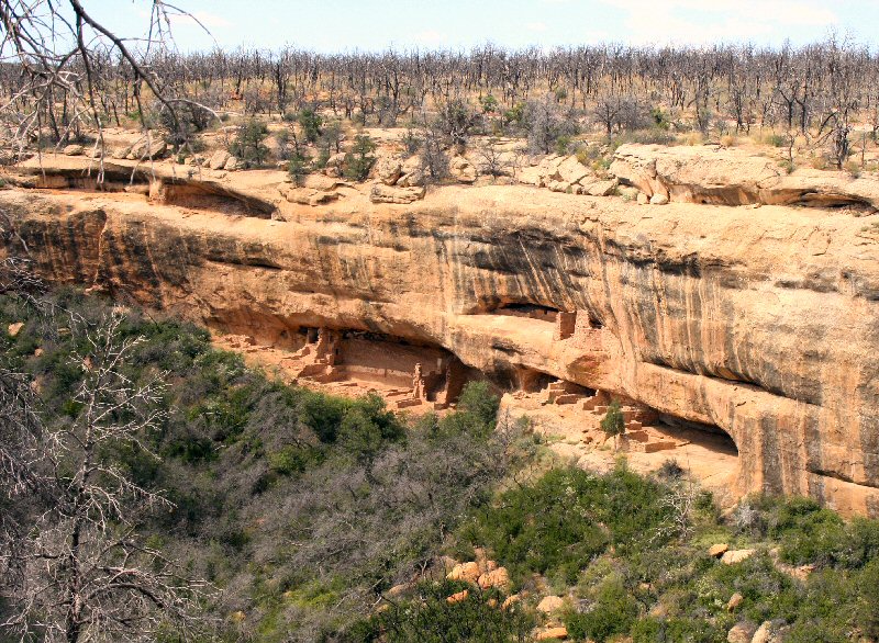 Above you can see evidence of a big fire that swept though Mesa Verde a few years ago. It didn't affect the ruins below, of course, and the grasses and shrubs are already coming back. Fires must have been a familiar threat to the ancient peoples.