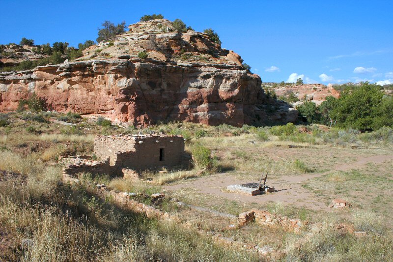 A short distance away were these pueblo buildings, the one mostly standing and the one in the foreground that is mostly just the foundation. The square thing with the ladder sticking out of it is a kiva which was restored by the property's original owner (Mr. Kelly himself) a couple generations ago.