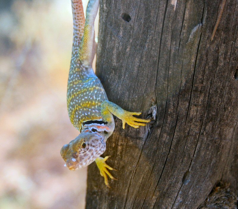There were a lot of other interesting sights on the grounds, but one of the most interesting to me was this collared lizard. I don't think I've ever seen one before. It sure was colorful, and not the least shy about my camera being a foot away. I had real trouble deciding which shot to use, 'cause this one and this other one were pretty good too...
