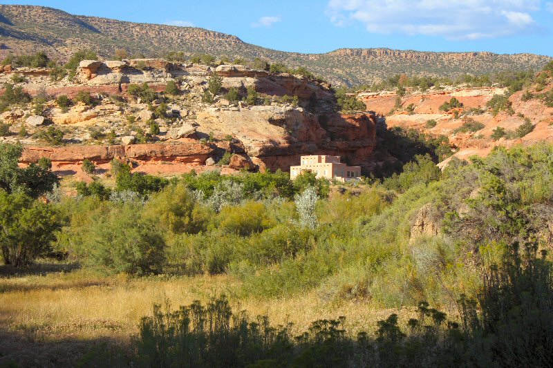 After departing Mesa Verde, I headed towards Kelly Place, an outdoor educational center and B&B, a neat place recommended to me by my friends Alan and Jonna Fleming. It's about 10 miles west of Cortez, in McElmo creek canyon. I took the shot above as I got close, it's of a private home about 1/8th mile up the canyon from Kelly Place.