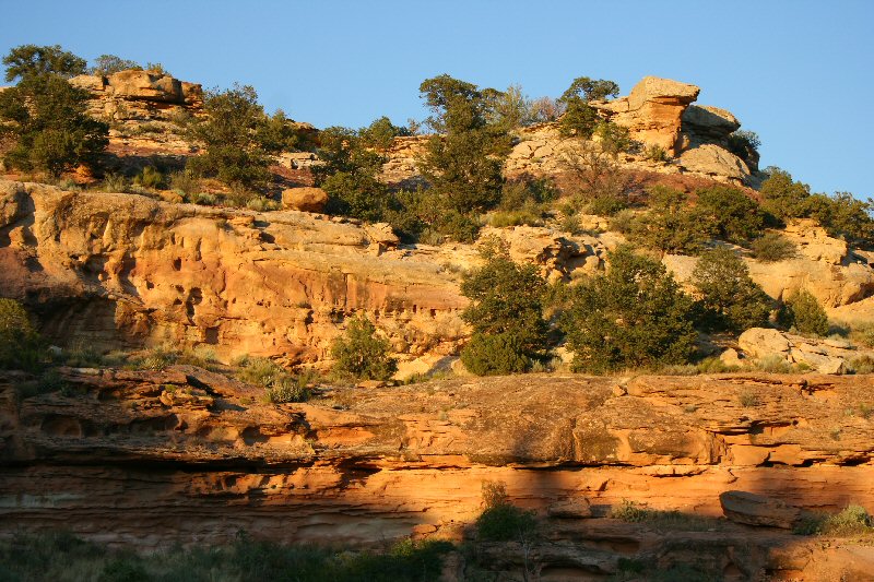 I got there kinda late, but not too late to join in a wonderful vegitarian lasagne dinner. So I decided to put off investigating the ruins until the next morning, but I couldn't resist the warm evening light on the canyon walls. Yup, it really looked just like that!