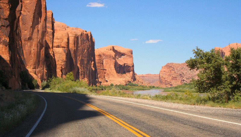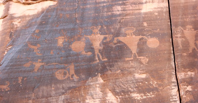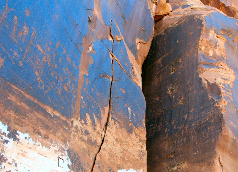 A few days later, I ended up in Moab, UT, where I rented a dirtbike and rode the Slickrock Trail. What a hoot that was! But later that same day, I rode down this 2-lane along the Colorado river downstream from Moab, and discovered some Indian petroglyphs visible from the road.